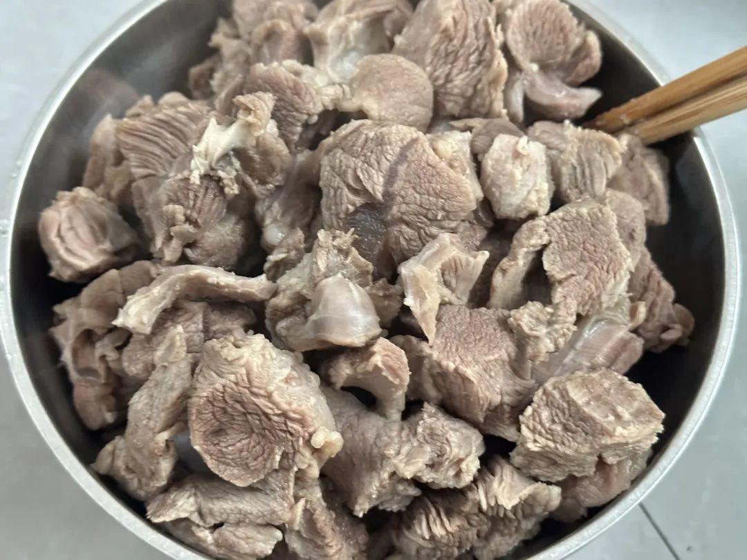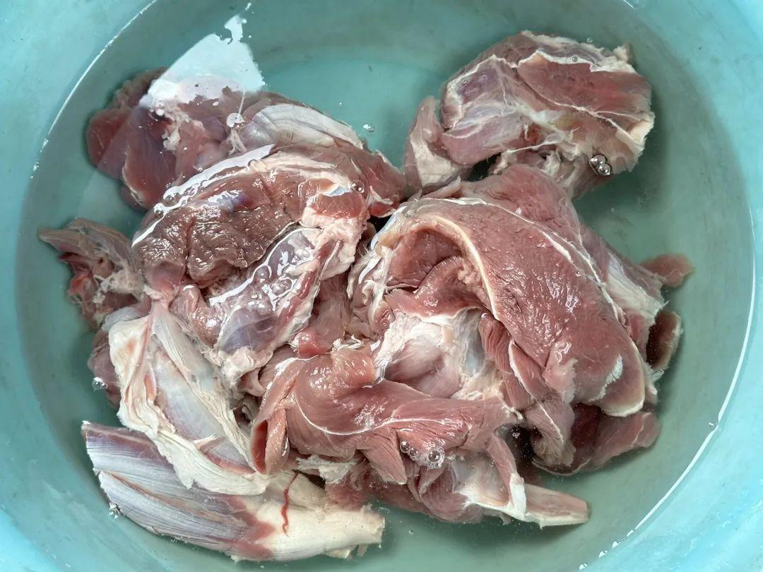 1、准备适量的羊肉,净水浸泡出血水;我这个是腱子肉,村里邻居自家养的羊,送了一些肉过来!