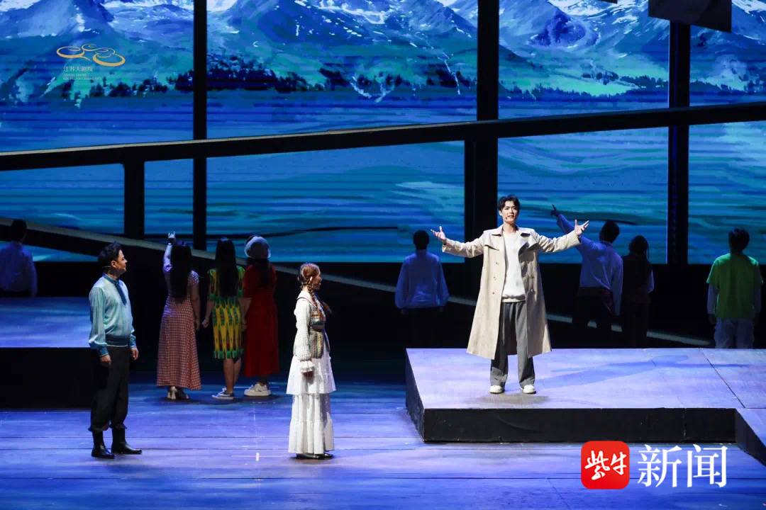 该剧共分为序幕、问山、问渠、问心和尾声五个部分,63位演职东说念主员以深湛的技巧,将歌曲、跳舞完好交融,同期奥秘地将江苏的雅致婉约与新疆伊犁的珍重奔放相联结,为不雅众带来了一场视听上的双重盛宴。