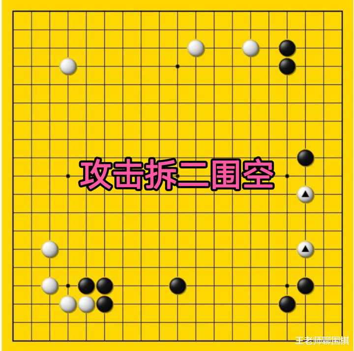 在围棋对弈的经过中,在围棋实战如何膺惩拆二,好,咱们来看棋盘,当今在右边白棋这里有一个拆二,关于黑棋来讲,当今膺惩主张天然等于右边的这个拆二?