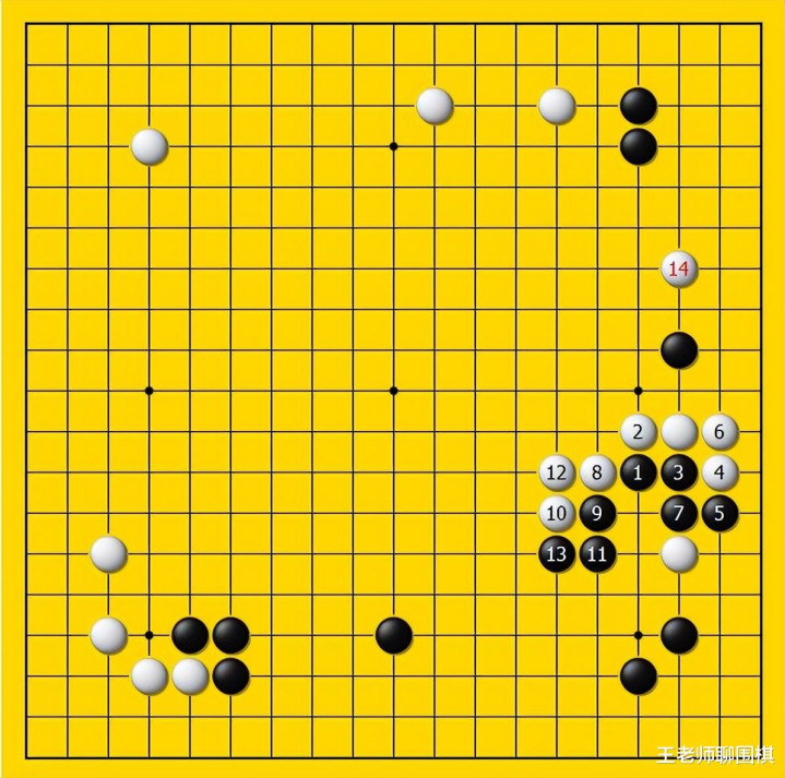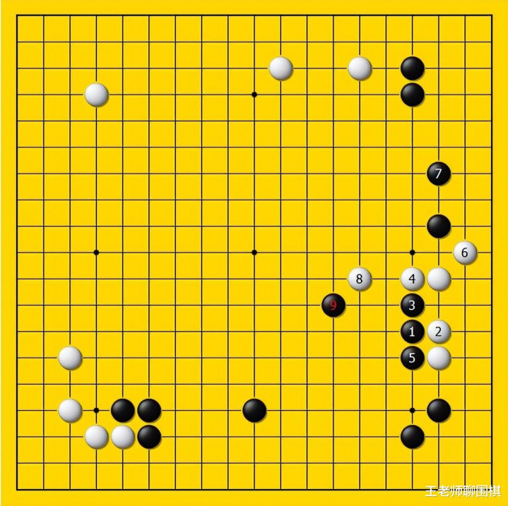那么膺惩这个拆二,咱们有两个主张,第一个主张等于通过膺惩,来沉稳黑棋下方的大形状,第二个主张等于通过膺惩来加强黑棋右上方的防患!