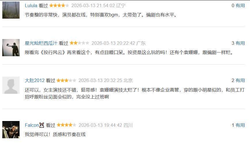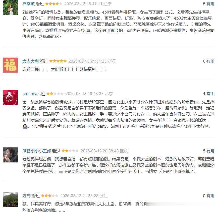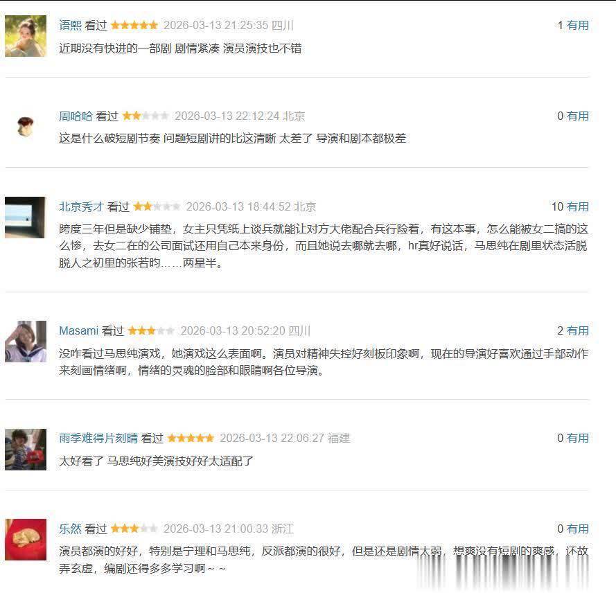 不少不雅众以为这部剧剧情紧凑,演员演技可以,尤其是宁理跟马想纯之间的敌手戏,十分值得不雅看。