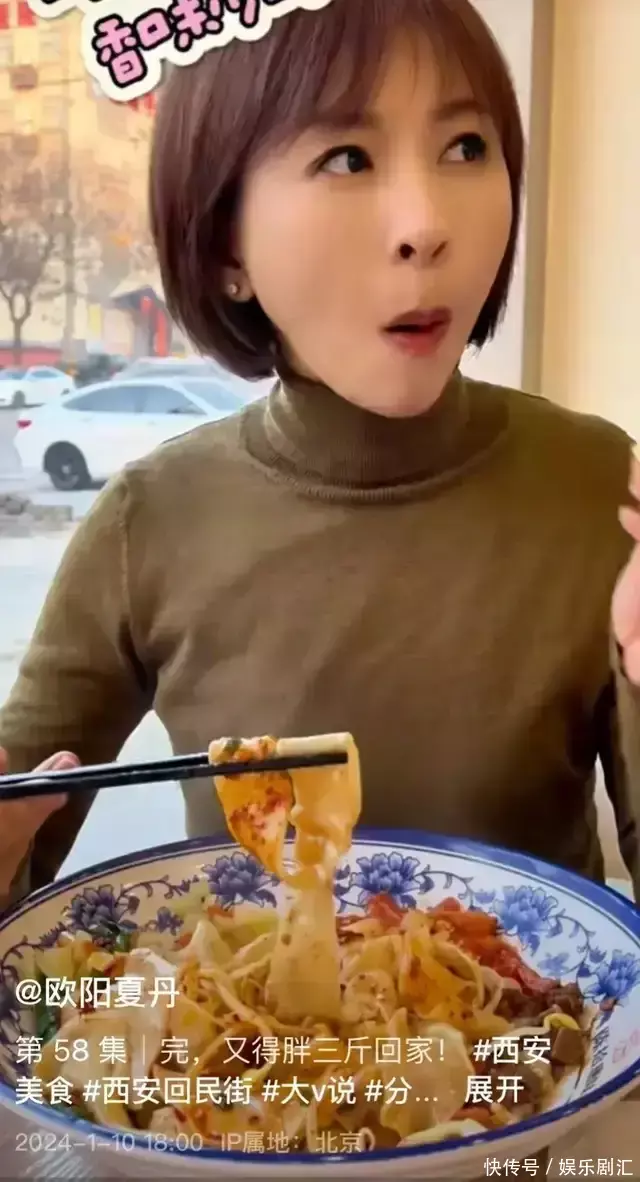 翻看欧阳夏丹外交账号,本年1月份她来到了西安,有益吃酸汤水饺和biangbiang面。赫然,她对西安的好意思食情有独钟。