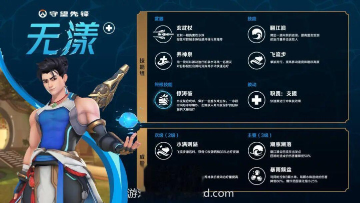 他的玄武杖大约辐照可指挥的飞空水珠,不错形成爆发伤害,在环节时刻烦闷敌东谈主。“翻江浪”大约击退敌东谈主并为盟友带来调整加成,“养神泉”不错字据战斗态势提供不同的接续调整。若是要速即变换位置,不错阐扬“飞流步”,踏浪乘波速即藏匿危急或与盟友会合。他的终极时期“惊涛破”不错先为标的盟友或我方提供过量人命值,然后爆发成威力刚毅的击退海浪,在环节时刻坚韧不拔。