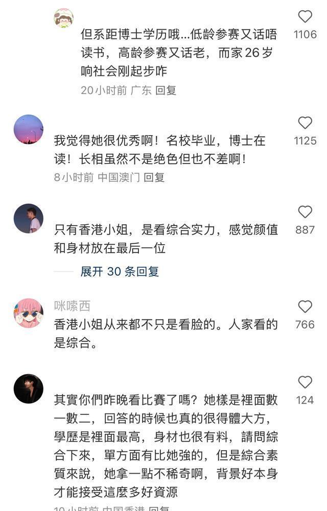 也有东说念主合计她颜值不够高,但“港姐”从来不是只看脸的,看的是“ 玄虚实力 ”。 这一届的“ 14强 ”好意思人,完全是“ 高学历 ”。 哪怕在清一色的学霸中,她的阐扬也很隆起。