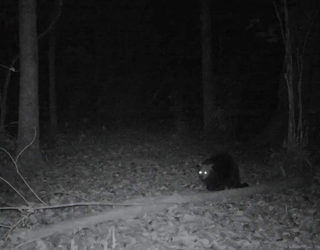 在红外补光灯的映照下,它的一对眼睛如同两盏顿然点亮的小灯泡,反射出绚丽而晃眼的白色光线,在暗澹的配景中格外留意。
