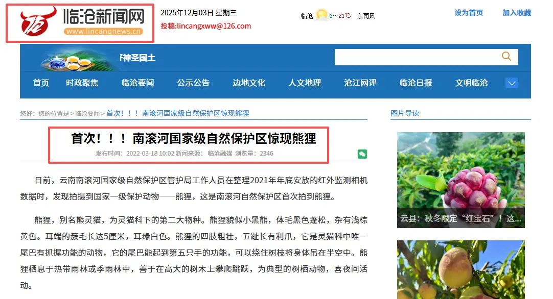 信息开首:临沧新闻网 初次!!!南滚河国度级当然保护区惊现熊狸 2022-03-18