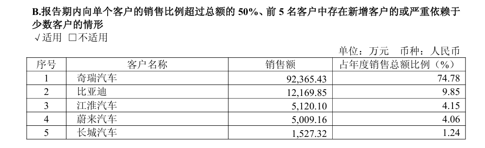 财报自满,2025年,汇通控股上前五名客户的销售额占年度销售总数的比例为94.08%,其中向第一大客户奇瑞汽车的销售额占公司年度销售总数比例为74.78%。